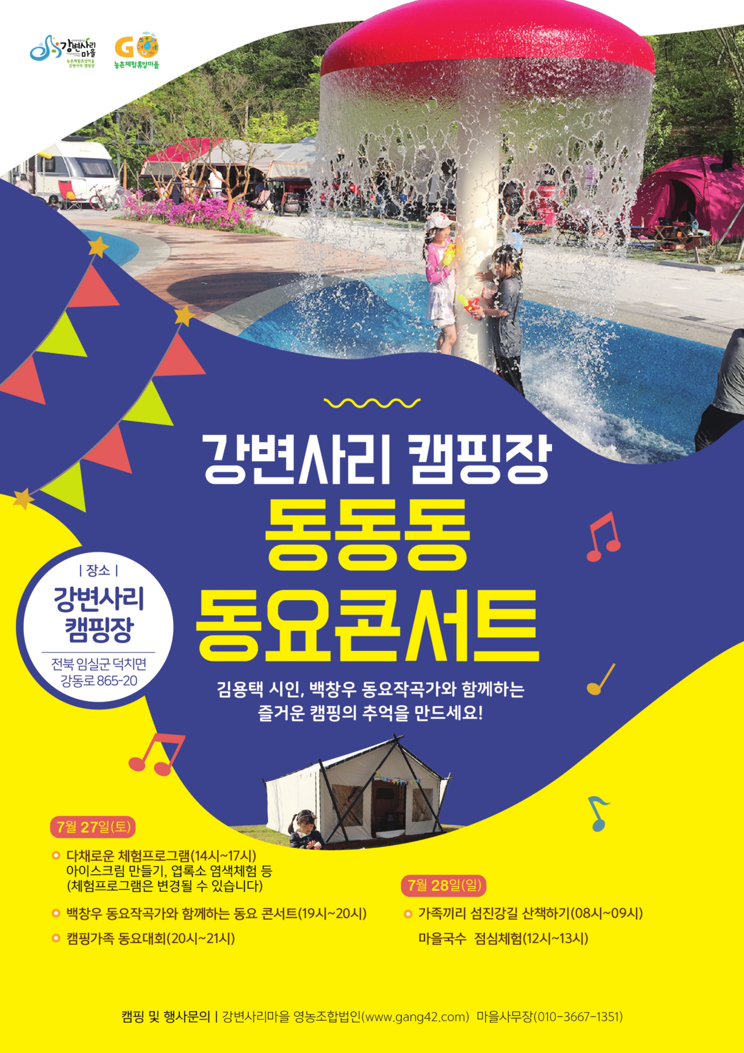 임실군 덕치면 강변사리마을에서 오는 7월 27일~28일 동동동 동요콘서트 및 다채로운 체험행사가 진행됩니다.